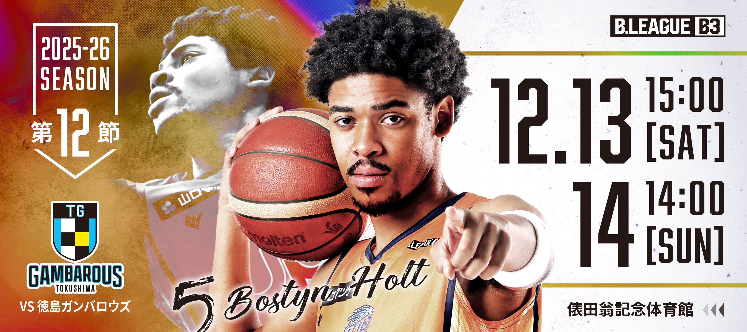 2025/12/05 ホームゲーム試合情報【ご案内】第12節12/13,14 vs徳島ガンバロウズ 宇部・俵田翁記念体育館
