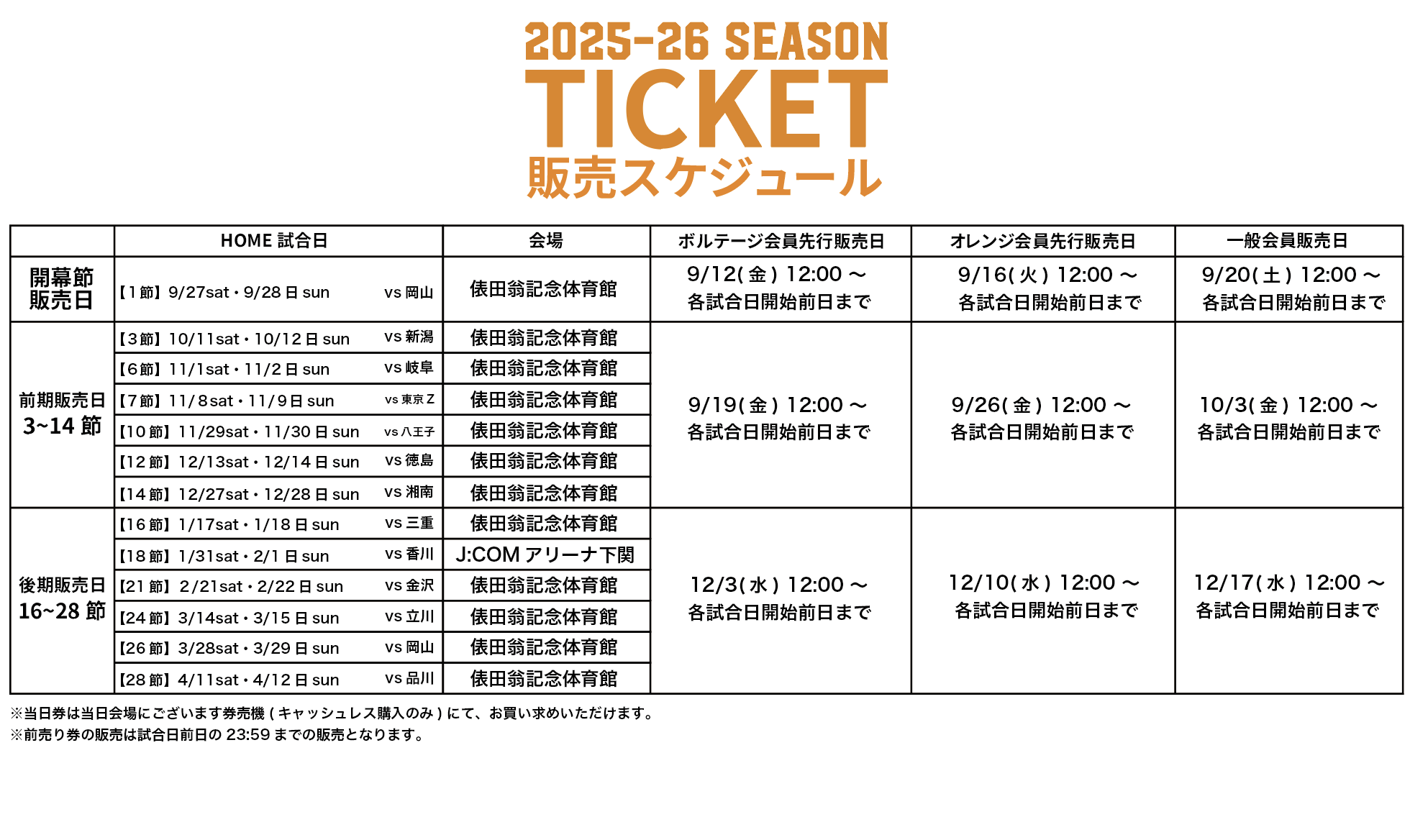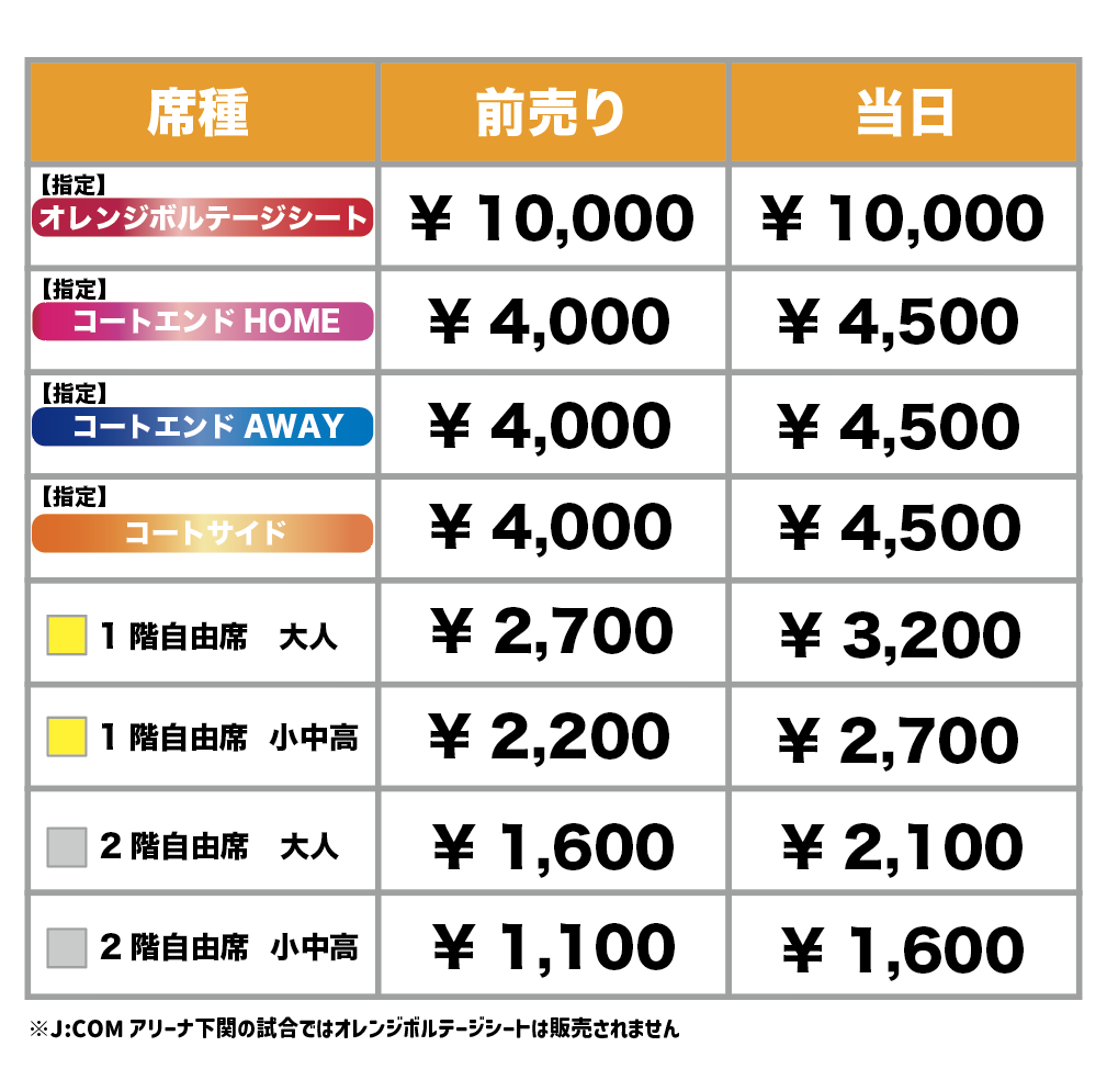 ◆オレンジボルテージシート(5席) ※俵田翁記念体育館での試合(全12節24試合)のみ