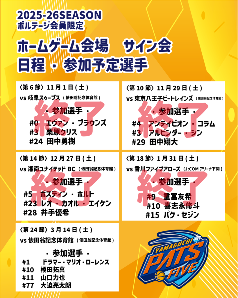 2025-26シーズンブースタークラブのボルテージ会員特典に含まれるサイン会についてお知らせいたします。